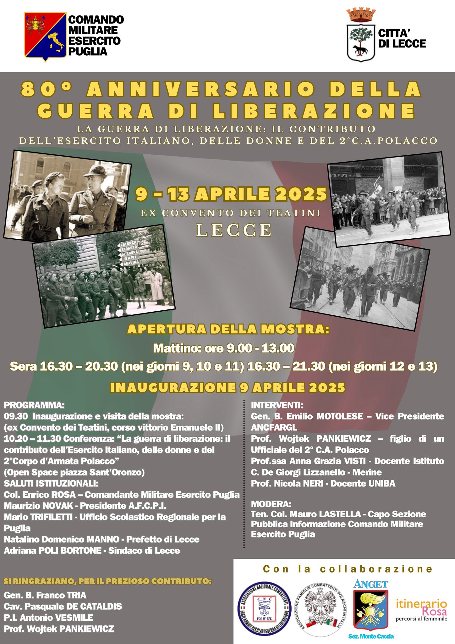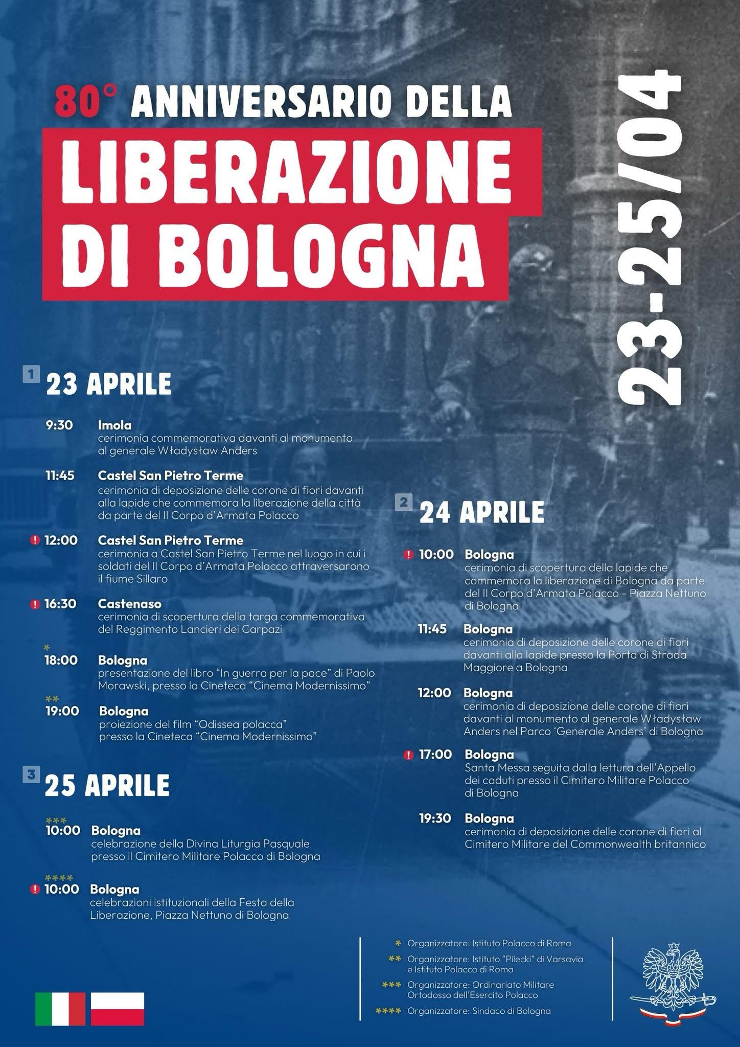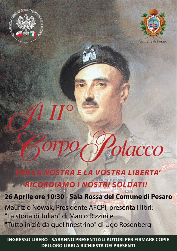 A Lecce si è tenuta questa mattina, 9 Aprile, la cerimonia di inaugurazione della mostra in collaborazione con l’Esercito Italiano. A Bologna avremo 3 giorni intensissimi, la giornata principale sarà il 24 Aprile perchè verrà scoperta la lapide in piazza Nettuno (sono anni che ci lavoriamo assieme ad altre associazioni locali e ai vari consoli di Milano che si sono succeduti). A Pesaro nella giornata del 26 Aprile, due nostri soci racconteranno nei loro libri la vera storia di Combattenti Polacchi. Mi permetto di affermare che sono stati scritti con il cuore. Spero ci sarà una buona affluenza di persone. Abbiamo iniziato anno scorso a collaborare con il Comune di Pesaro con lo scopo di riuscire a mettere una lapide nella zona centrale della città. Spero che ci riusciremo, d’altronde è stata liberata dai nostri padri.